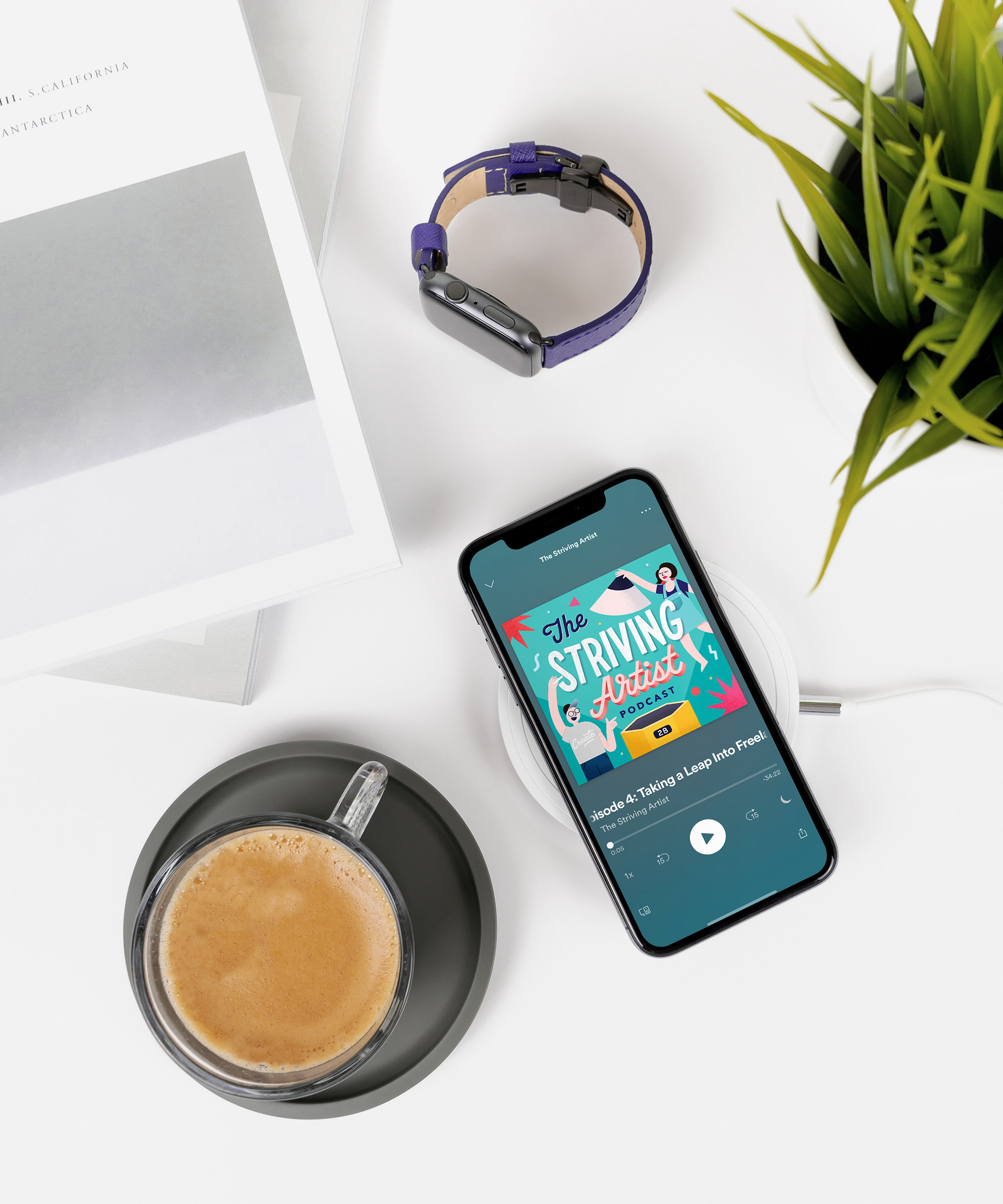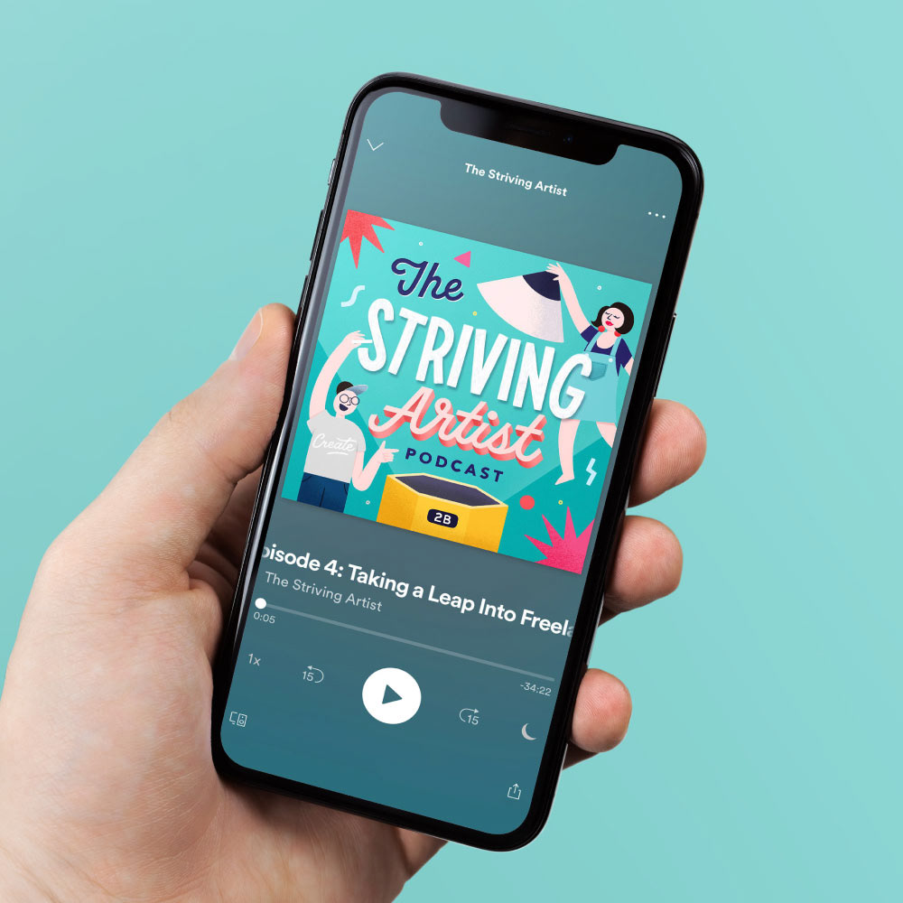 I wanted to illustrate both hosts (Stefan Kunz & Lauren Hom) as the focal point of the cover while adding elements that represents each. For example, I utilized the 2B pencil and the podcast title pops out of it with shiny lights to represent drawing and creativity. Also, I've added Stefan lettering with a chalk with his signature smile and a ‘Create’ t-shirt. I captured Lauren’s red bold lipstick and her cute peach earrings.