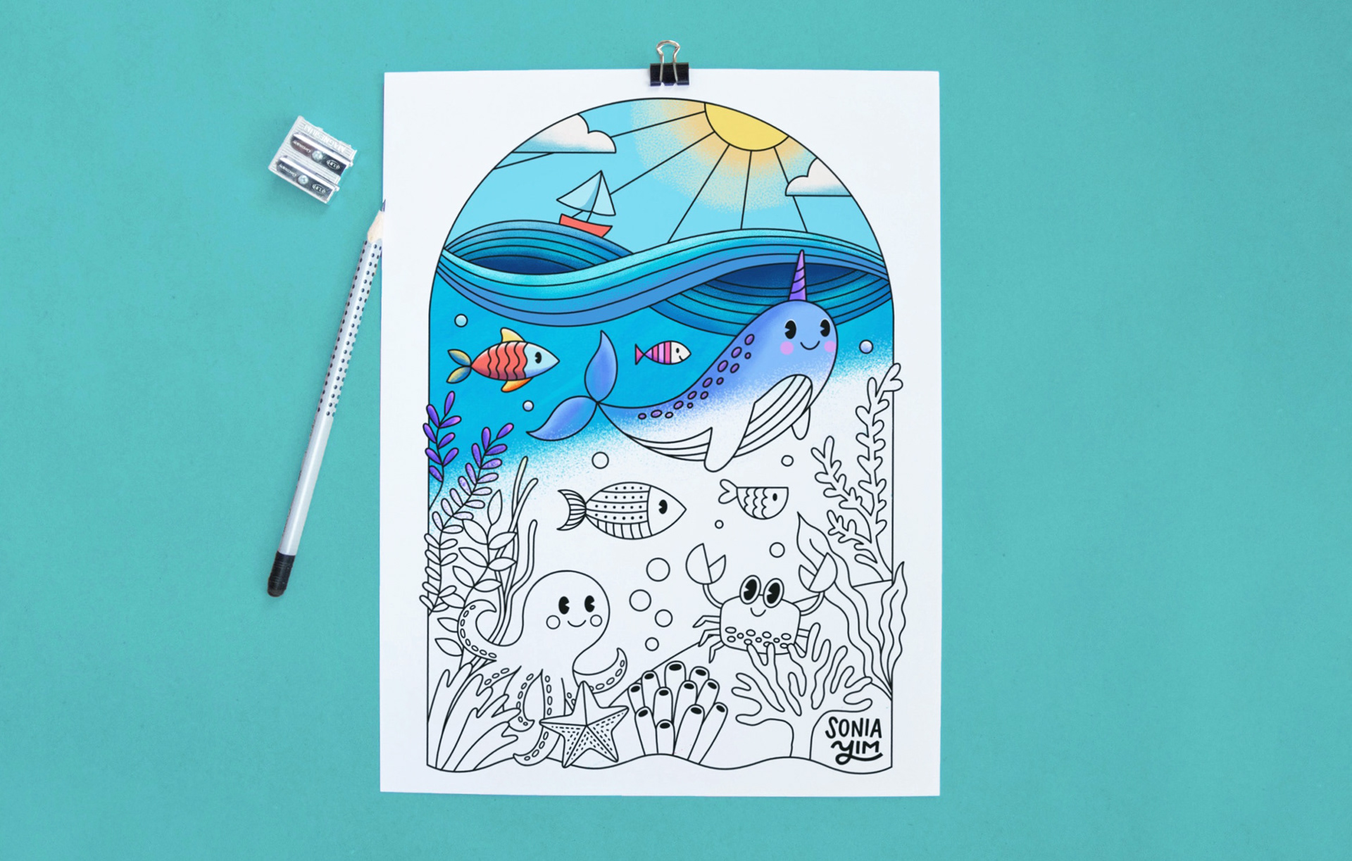 A cute, fun coloring page I created as a submission for the Caring Colouring - Volume 2